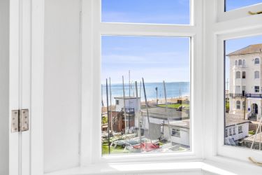 This elegant Georgian top floor two bedroom apartment is ideal for weekend escape seekers looking for a refined coastal retreat, professionals or couples who want the perfect balance of city access and seaside calm or downsizers seeking character without compromise. Grade II listed building, perfectly positioned on the seafront. Boasting magnificent bay sash windows, soaring ceilings, and uninterrupted views of the ocean, this home blends timeless charm with contemporary comfort.